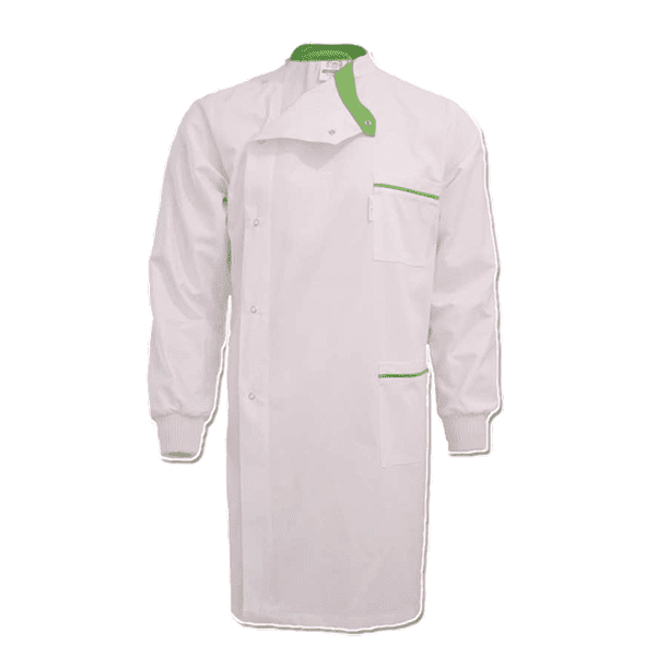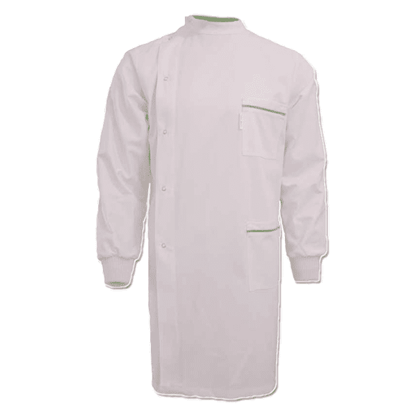 Bata abertura lateral, um bolso inferior e um superior, punhos em malha.